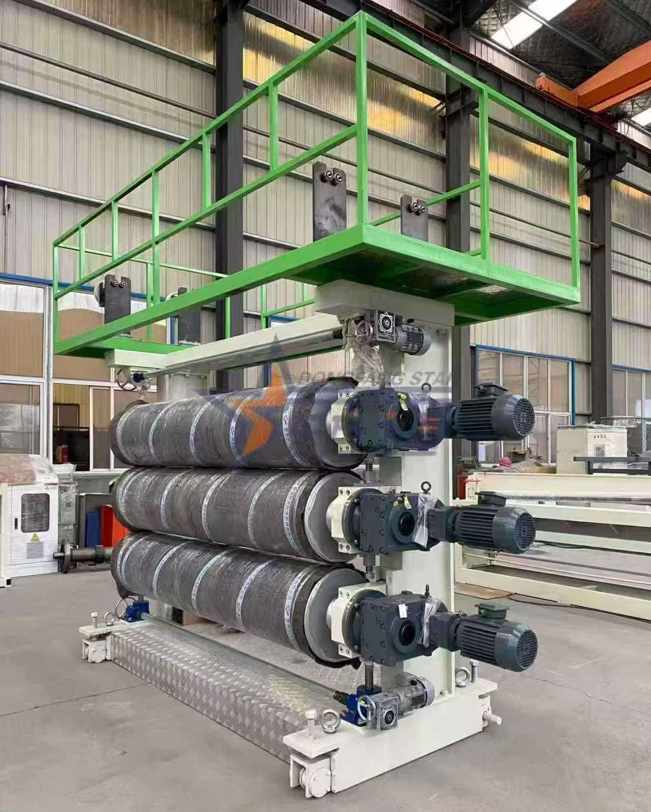 Descriere: role de ∮450mm×2200mm cu diametru mare cu finisaj în oglindă (duritate RC60-65) cu sisteme independente de control al temperaturii și de antrenare. Temperatura uniformă și constantă a suprafeței rolelor permite modelarea și eliminarea rapidă a urmelor de curgere, cheie pentru producerea de carcase și panouri publicitare de înaltă calitate.