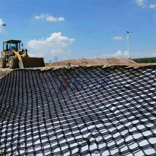 Echipamentele de extrudare ale geogridului sunt folosite pentru a produce geocelule. Primul pas al acestui produs este de a produce foi, apoi foile sunt tăiate online, iar apoi foile de plastic sunt conectate prin