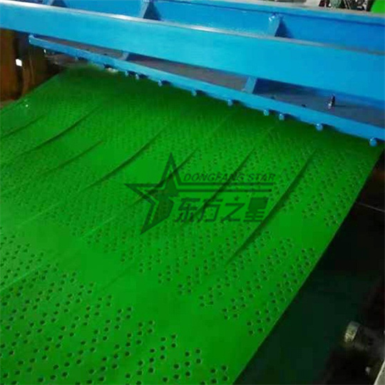 Echipamentul de geogrilă cu folie HDPE este utilizat pentru a produce geocelule. Primul pas al acestui produs este de a produce foi, apoi foile sunt tăiate online, iar apoi foile de plastic sunt conectate prin