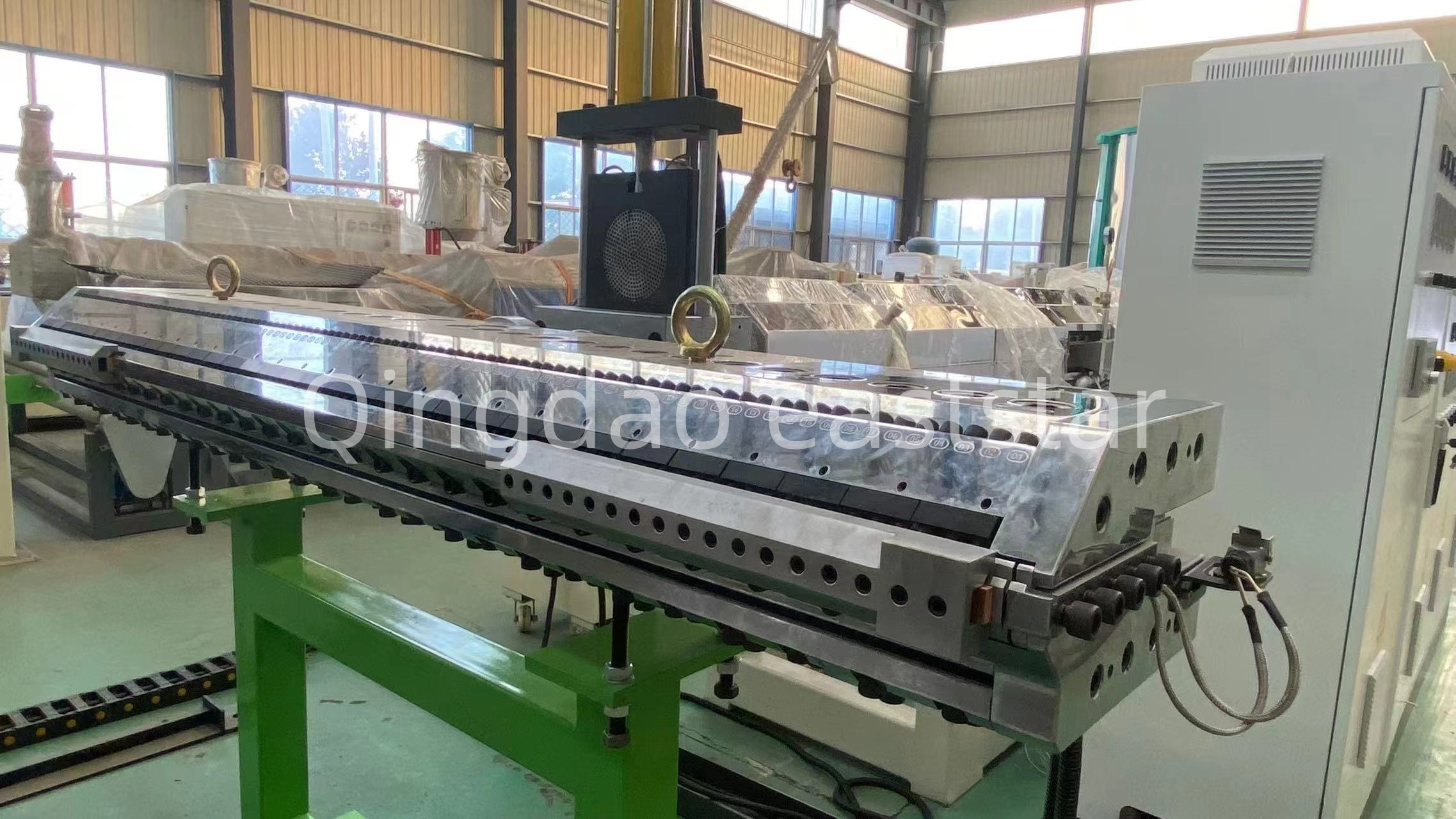 Sistemul de matriță alLinie de producție a plăcilor de drenaj PEadoptă un design de rulaj de tip umeraș, cu o lățime a matriței de 1650 mm, capabil să producă plăci de drenaj cu un singur strat cu o grosime de 0,8-1,2 mm. Suprafața curelei matriței este cromată și lustruită până la un finisaj în oglindă, cu o rugozitate a cavității de Ra0,1um și o rugozitate a buzelor matriței de Ra0,05um. Dispozitivul de formare cu două role este echipat cu role Φ450×1700mm, cu o duritate a suprafeței rolei de HRC58-62 și o grosime de cromare de 0,08 mm. Un design special cu mai multe canale asigură o temperatură uniformă. Aceste configurații profesionale garantează că produsele de la panouri de drenaj produse delinie de producțieau o structură punctată uniformă și o performanță stabilă de drenaj.