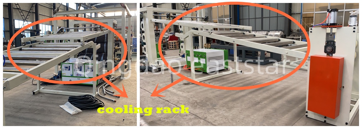 Am echipatLinie de producție a foilor de coextrudare multistrat ABScu un sistem complet de alimentare și auxiliar. Extruderul SJ-130 este echipat cu un alimentator cu șurub din oțel inoxidabil E-1000, iar extruderul SJ-70 este echipat cu un alimentator cu vid E-300, asigurând furnizarea precisă a diferitelor materii prime. Suportul de răcire este echipat cu role din oțel inoxidabil lungi de 8 metri și trei tăietoare de margini reglabile, asigurând o răcire suficientă a foii și marginile îngrijite. Mașina de tăiat folosește o foarfecă electrică mecanică, echipată cu un codificator coreean Autonics, pentru a realiza tăierea automată cu lungime fixă.