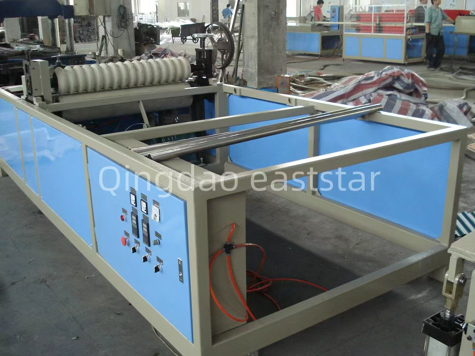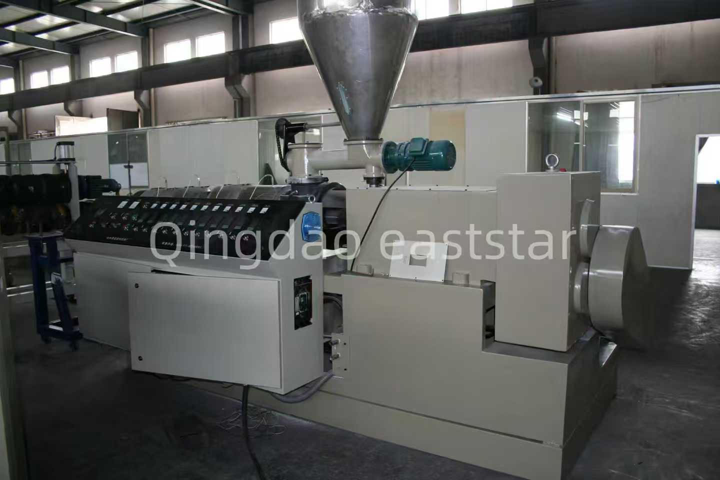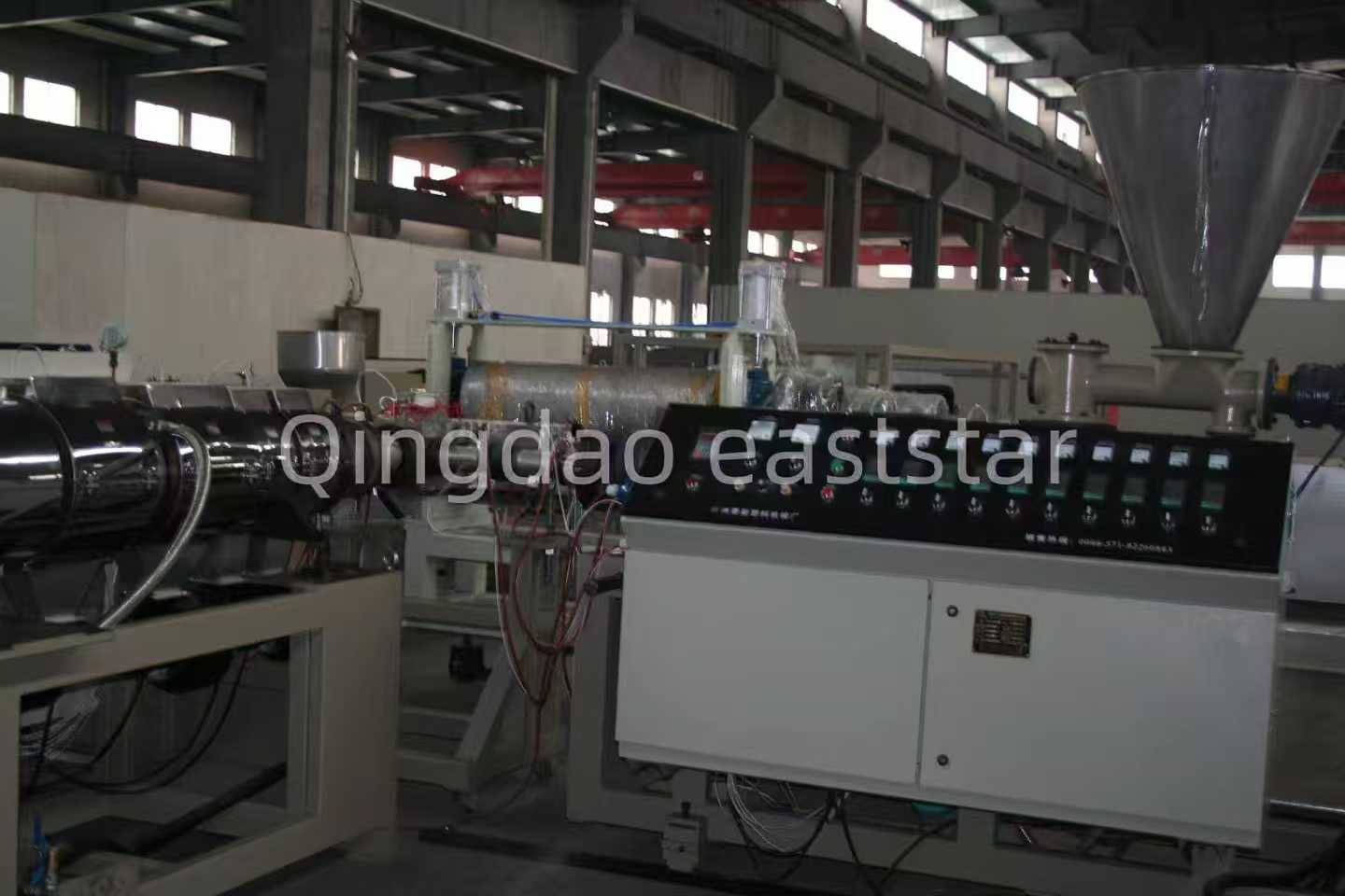 Echipamentul de bază alLinie de producție de tablă ondulată cu coextrudare PC+ASAinclude două extrudere cu un singur șurub, SJ-120 și SJ-40, utilizate pentru extrudarea stratului de PC și, respectiv, a stratului ASA.