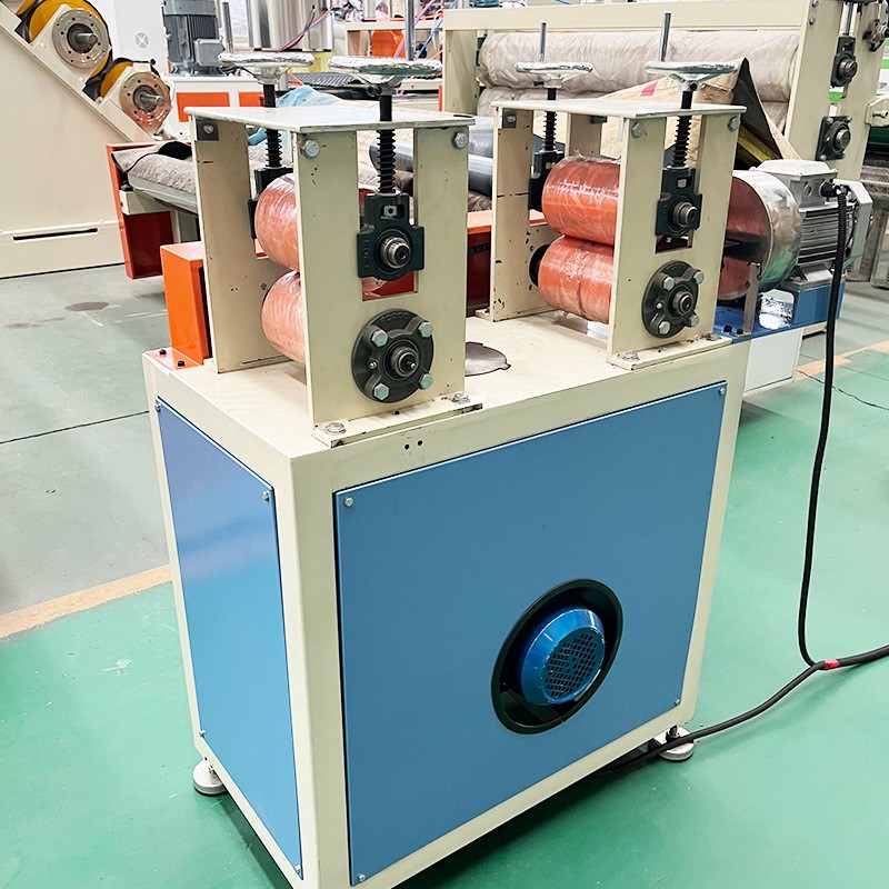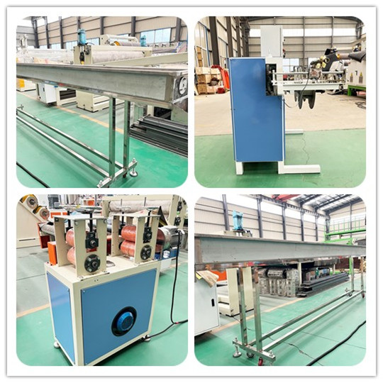 Mașina de extrudare a benzii de margine a sacului din PE include compresor cu un singur șurub - matriță pentru capul mașinii - depozit de modelare în vid - tractor de tracțiune - înfășurare