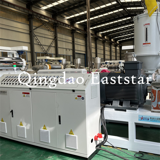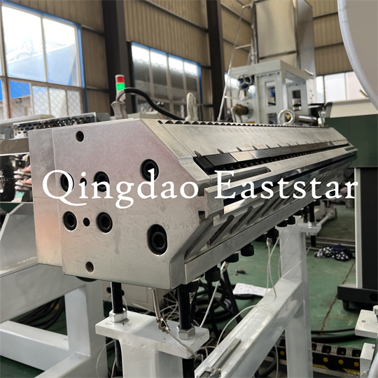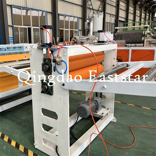suport, o mașină de tracțiune cu role de cauciuc, o mașină de forfecare și un dispozitiv cu bandă transportoare. Extruder cu placă antiderapante PVC Echipament, lățimea produsului și