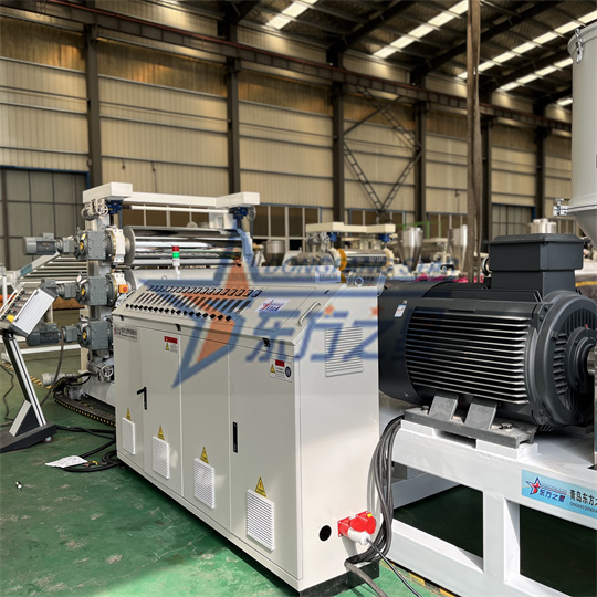Echipament de placă antistatică din PVC: Echipamentul constă în principal dintr-un extruder cu un singur șurub 120, un calandru cu trei role, un suport de răcire, o mașină de tracțiune cu role de cauciuc, o mașină de forfecare și