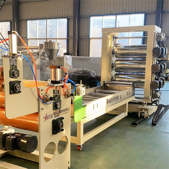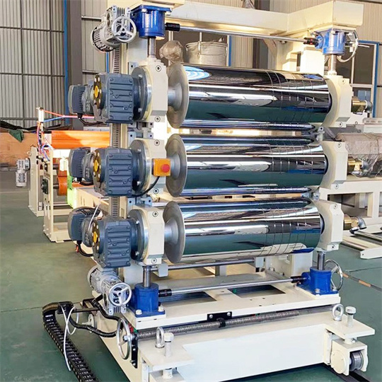 Echipament pentru perdele pentru uși din PVC moale Echipamente pentru perdele pentru uși cu dungi din PVC Caracteristicile echipamentului de perdele pentru uși moale din PVC calandrul cu trei role Calandrul echipamentului de perdele pentru uși moale din PVC: este compus în principal din 5 părți, inclusiv o parte super-oglindă, un sistem de acționare cu motor, un sistem de reglare a golului, un sistem de control electric și un ventilator. Un set de mașini de calandrare cu trei role pentru perdele moale din PVC poate produce perdele moi transparente din PVC cu o lățime de 200-400 mm și o grosime de 0,5-5 mm. Această mașină de calandrare cu trei role pentru perdele moi din PVC poate produce perdele moi lucioase, mate și cu dungi într-o singură mașină. Este ușor de operat.