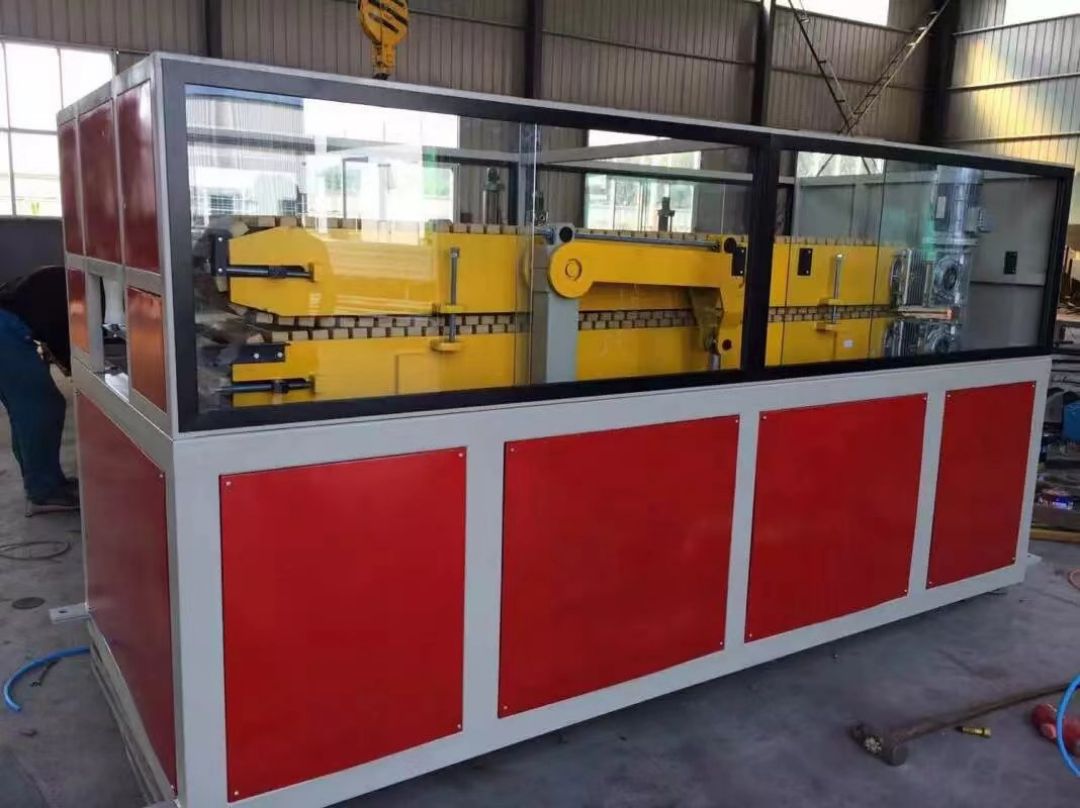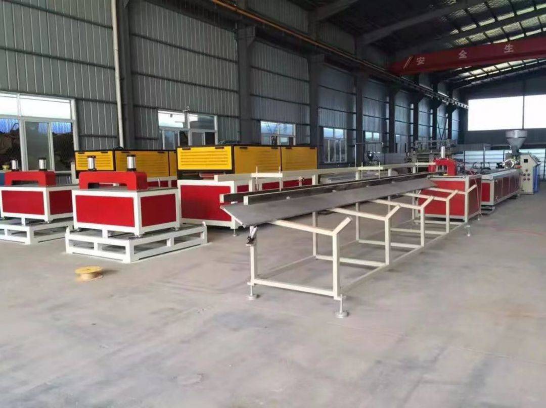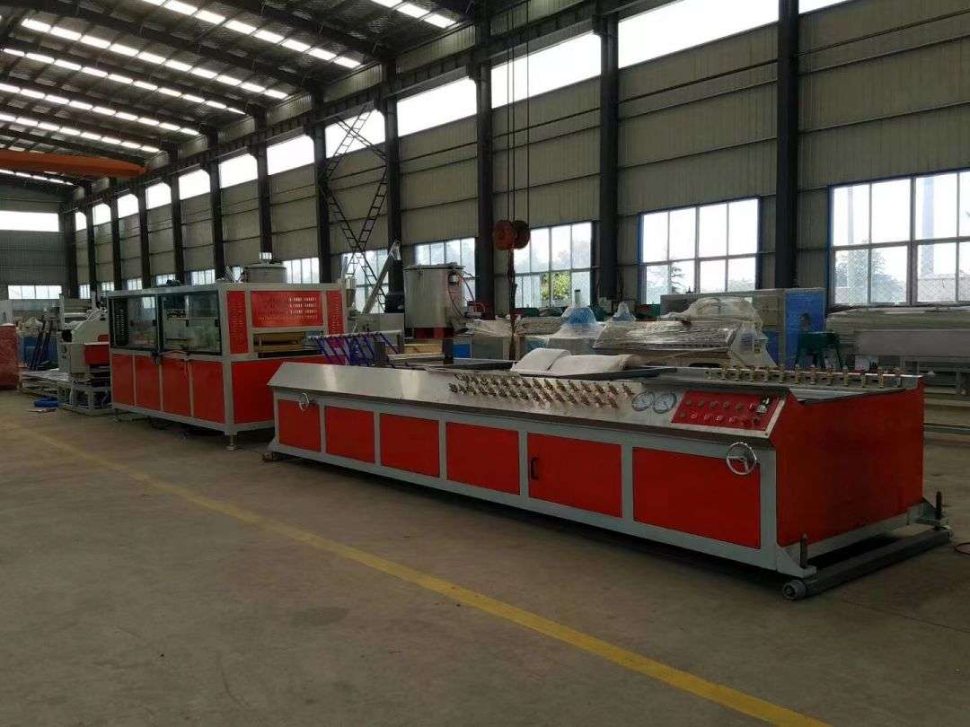 Linia de producție a panourilor de perete din PVC este compusă în principal dintr-un extruder conic cu două șuruburi, o masă de modelare în vid, un tractor, o mașină de tăiat și un suport de primire a materialului.