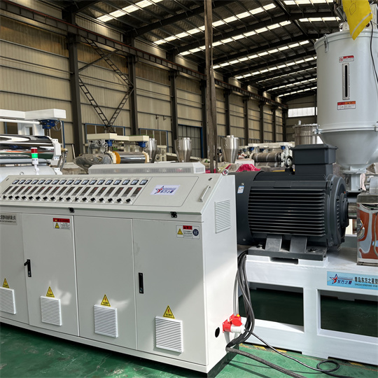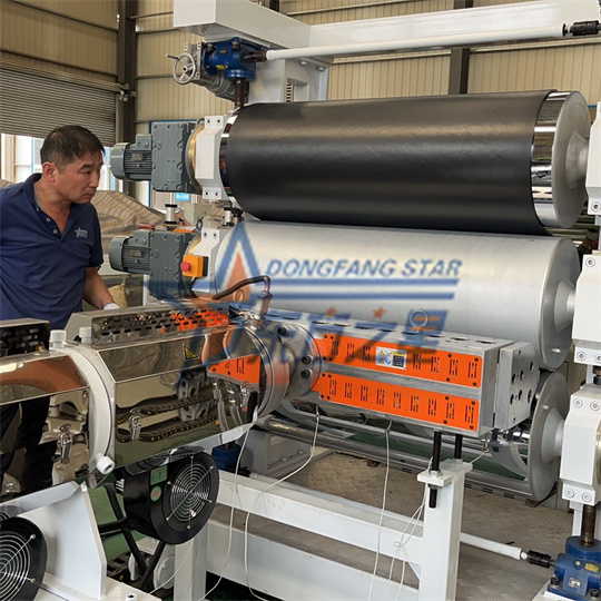 Echipament de extruder antistatic din PVC moale: Echipamentul constă în principal dintr-un extruder cu un singur șurub de 120, un calandru cu trei role, un suport de răcire, o mașină de tracțiune cu role de cauciuc, o mașină de forfecare și un