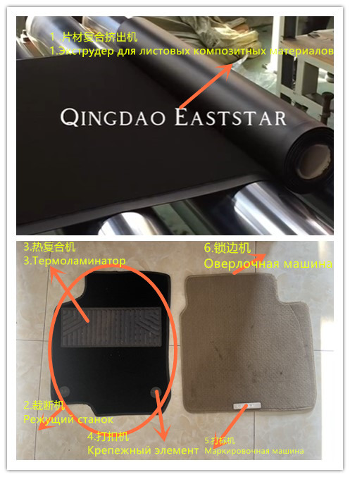 Echipament de producție de covorașe pentru autovehicule TPE: linia de producție de covorașe de podea compozită TPE + covor dezvoltată independent de la Qingdao Eaststar a trecut brevetul național. Este o linie de producție de top de covorașe compozite lansată de Eaststar pentru domeniul materialelor de interior auto. Acest echipament folosește un șurub special PTE cu o structură specială, care se poate plastifia uniform. Combinate cu un proces compozit unic, produsele produse au aderență puternică, fără deformare la tracțiune și fără formaldehidă. Acest echipament a fost folosit de mulți furnizori autohtoni și străini de producție de covorașe și a fost exportat în Coreea de Sud, Japonia, Egipt și alte țări.