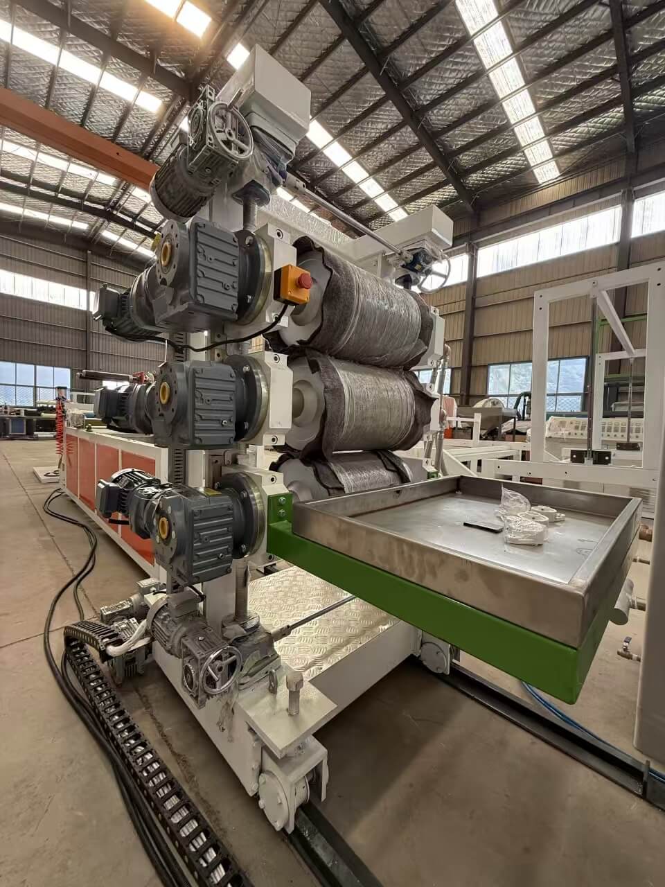 Linia de extrudare a foilor late TPU/PE/PP/PS-300 este potrivită pentru prelucrarea peletelor TPU/PE/PP/PS sau a amestecurilor zdrobite.